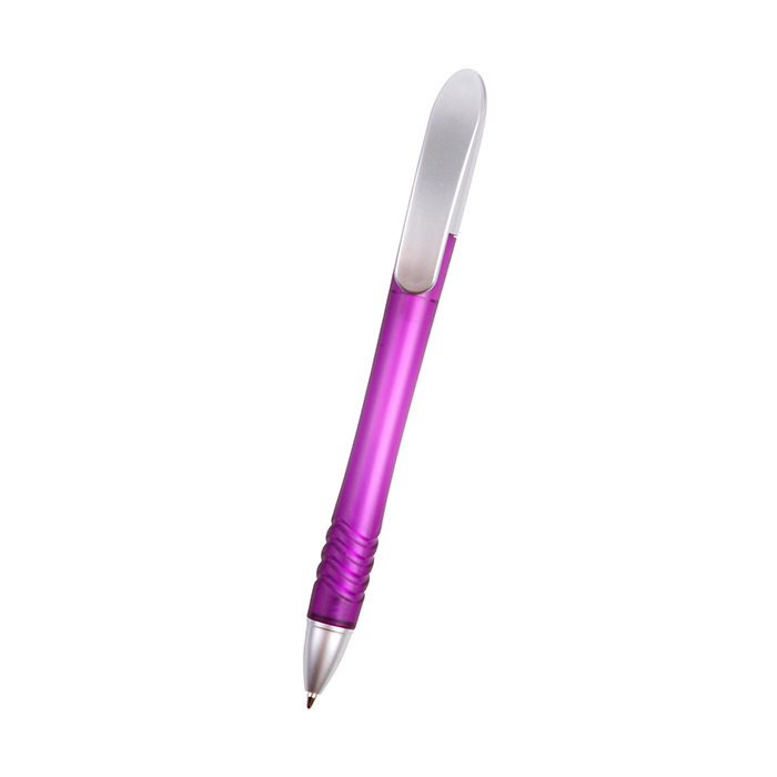 Bolígrafo de plástico con accesorios color plata y tinta negra.