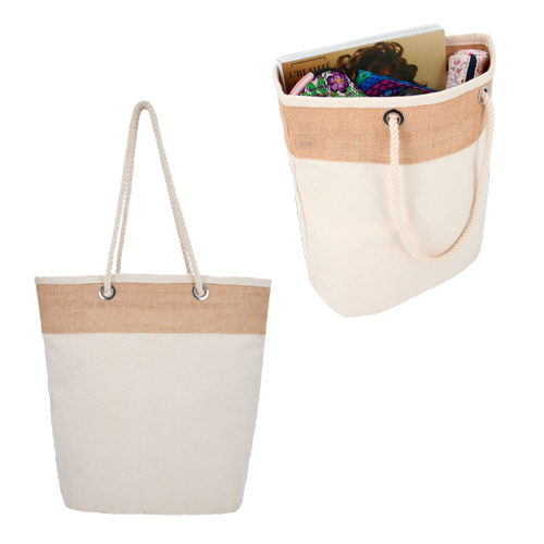 Bolsa con arillos metalicos sin duda de gran tamaño para llevar todas tus cosas ademas es de yute y algodon