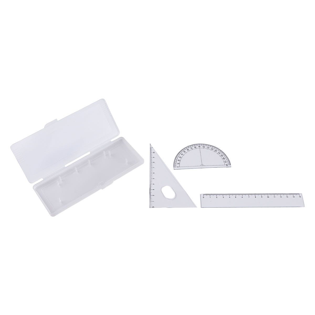 Incluye regla, transportador y escuadra.