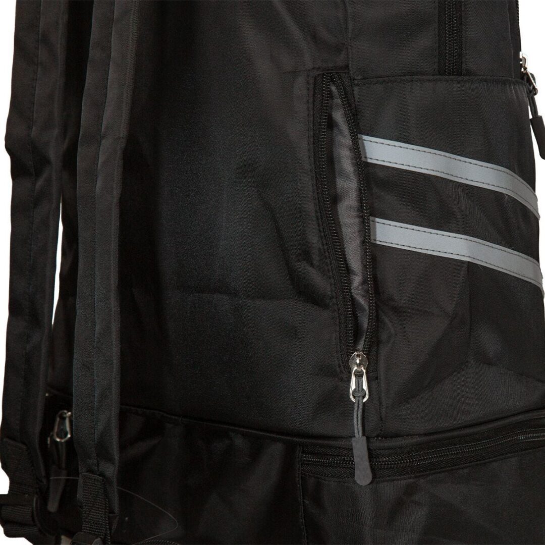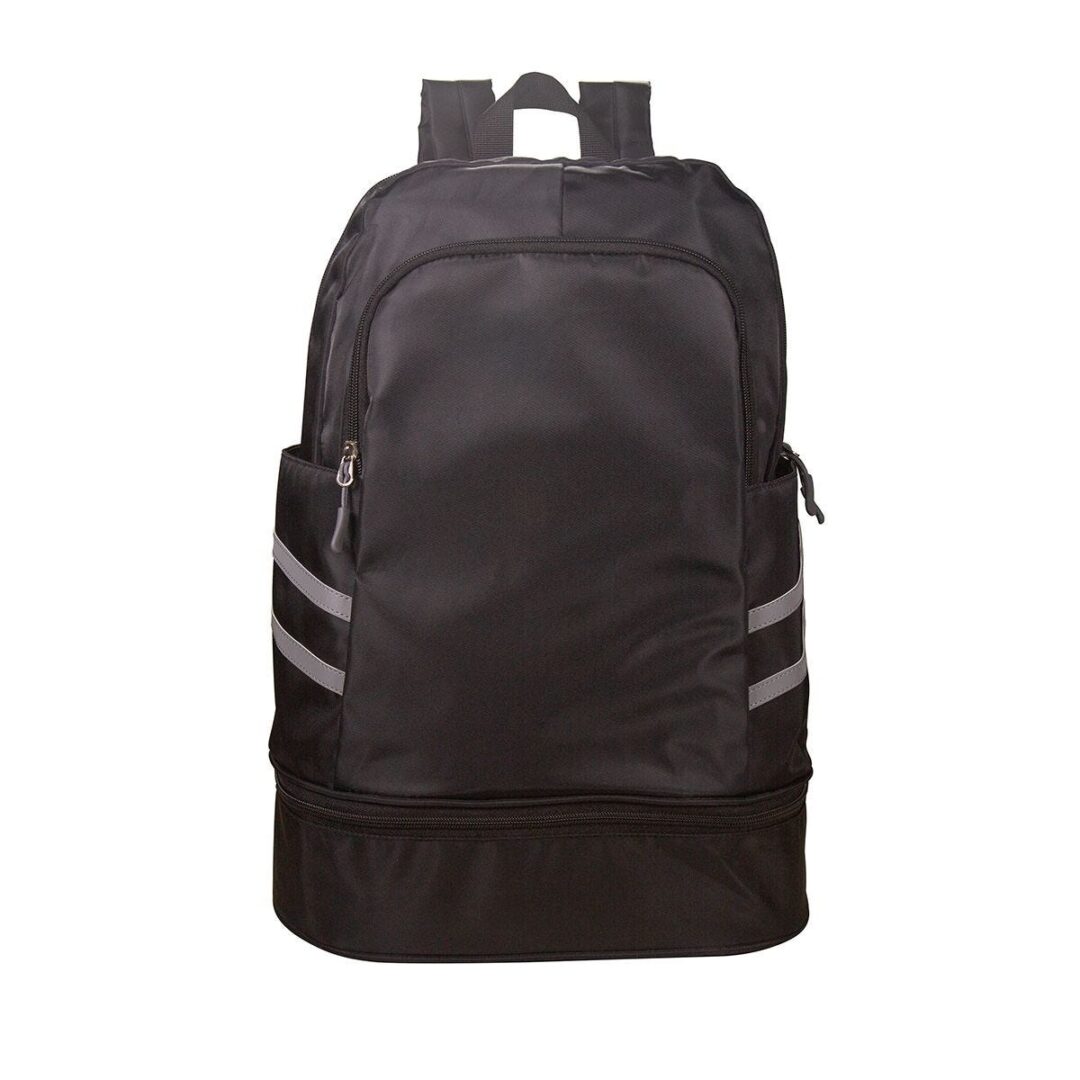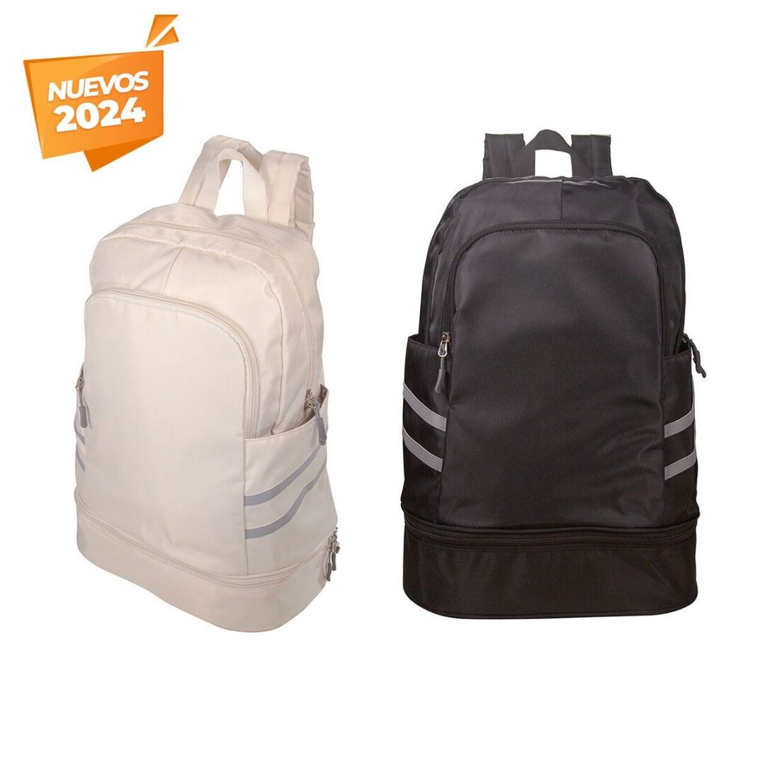 Mochila tipo casual, para un estilo de vida activo. Su diseño cuenta con un compartimento principal equipado con separación de malla, ideal para lap top o documentos, además tiene dos pequeños bolsillos de malla para objetos pequeños. El bolsillo frontal con forro impermeable, permite separar prendas mojadas del resto del interior. Cuenta también con dos bolsillos laterales para un acceso rápido y práctico, así como un compartimento inferior, ideal para calzado. En la parte trasera, tiene un mini bolsillo especial para objetos de valor o muy pequeños.