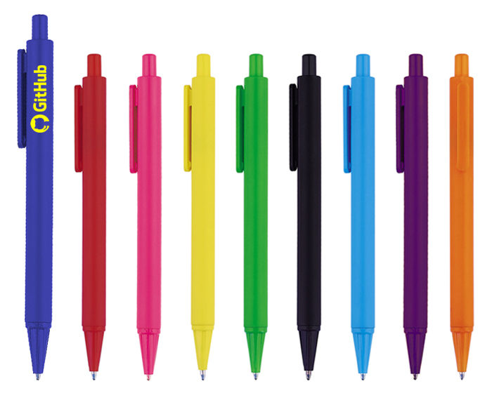 Bolígrafo de plástico con cuerpo en color. Mecanismo de click. Tinta negra . Tinta azul