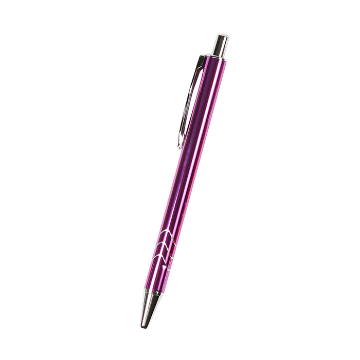 Bolígrafo metálico retráctil con clip y detalles cromados. Tinta de escritura negra.