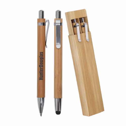 «Set de bolígrafo y lápicero de bambú, con estuche incluido: un toque natural y sofisticado para llevar tu escritura al siguiente nivel.»