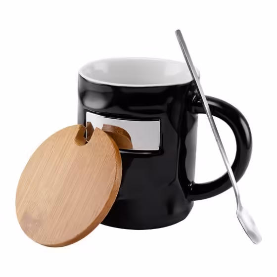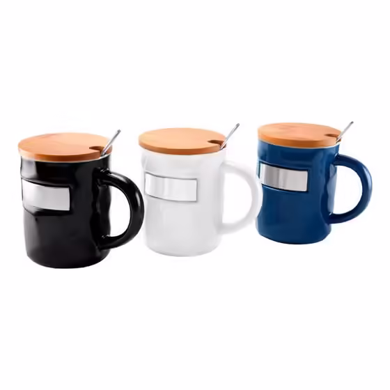 Tazas con placa metalica sin duda algo innovador para tu campaña publicitaria ademas tienen tapa y cucharas metalicas